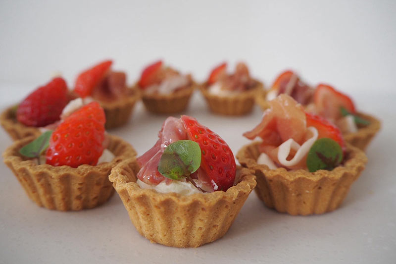 - 前菜3種(カプレーゼ/えびマリネ/生ハムタルト)