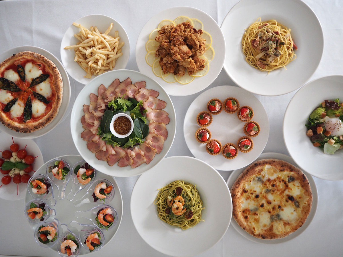 パティシエが一つ一つ丁寧に手作りするスイーツと料理。ピザは店内の窯で焼き上げる本格スタイル。