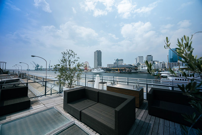 テラスには港の風が通り、昼夜で表情を変える景色が広がります。